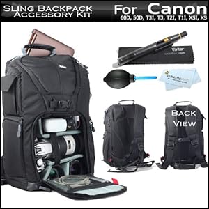 Buy Vivitar Professional Photo / DSLR / Laptop / Accessories Sling Backpack Case For Canon EOS Rebel 60D, 50D, T3I, T3, T2I, T1I, XSI, XS, Digital SLR Camera + Lens Pen Cleaning Kit + Air Dust Blower + MicroFiber Cleaning Cloth this month to take advantage of these low prices and have your package shipped to you right away.